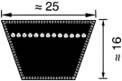 Optibelt VB klassische Keilriemen DIN 2215 / ISO 4184, Profil 25. Der optibelt VB ist aufgrund seiner vielfältigen Anwendungsmöglichkeiten der Klassiker unter den Antriebsriemen. Seine Qualitäten kommen bei schwierigen Antrieben im Landmaschinenbau genauso zur Geltung wie bei außergewöhnlichen Antriebslösungen, zum Beispiel bei Keil-Flach-Antrieben im Maschinenbau. Optibelt VB klassische Keilriemen sind "Satz Constant" und damit ungemessen satzverwendbar. Der optibelt VB findet als Klassiker unter den Keilriemen vielfache Verwendung im allgemeinen Maschinenbau und auch in Sonderantrieben. • hervorragende Betriebssicherheit • optimale Laufeigenschaften • gleichmäßige Leistungsübertragung • abriebbeständiges Umhüllungsgewebe • vielfältige Sonderausführungen • universelle Einsatzmöglichkeiten • Biegewilliger als Schmalkeilrimen • Temperaturbereich -30°C bis +90°C • Elektrisch leitfähig.