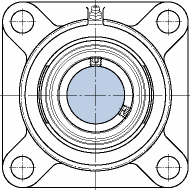 Y-Flanschlagergehäuseeinheiten, Baureihe FY..TF, quadratisch, Vierloch-Flanschlagergehäuse, Spannlager aus Wälzlagerstahl mit Gewindestiftbefestigung, Graugussgehäuse.