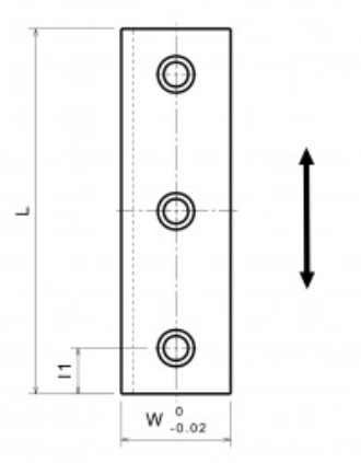 Gleitplatte mit 2 Gleitflächen nach VDI 3357, wartungsfrei, Werkstoff: Basismaterial Sondermessing (SO#50SP2), Schmierstoff: Graphit.